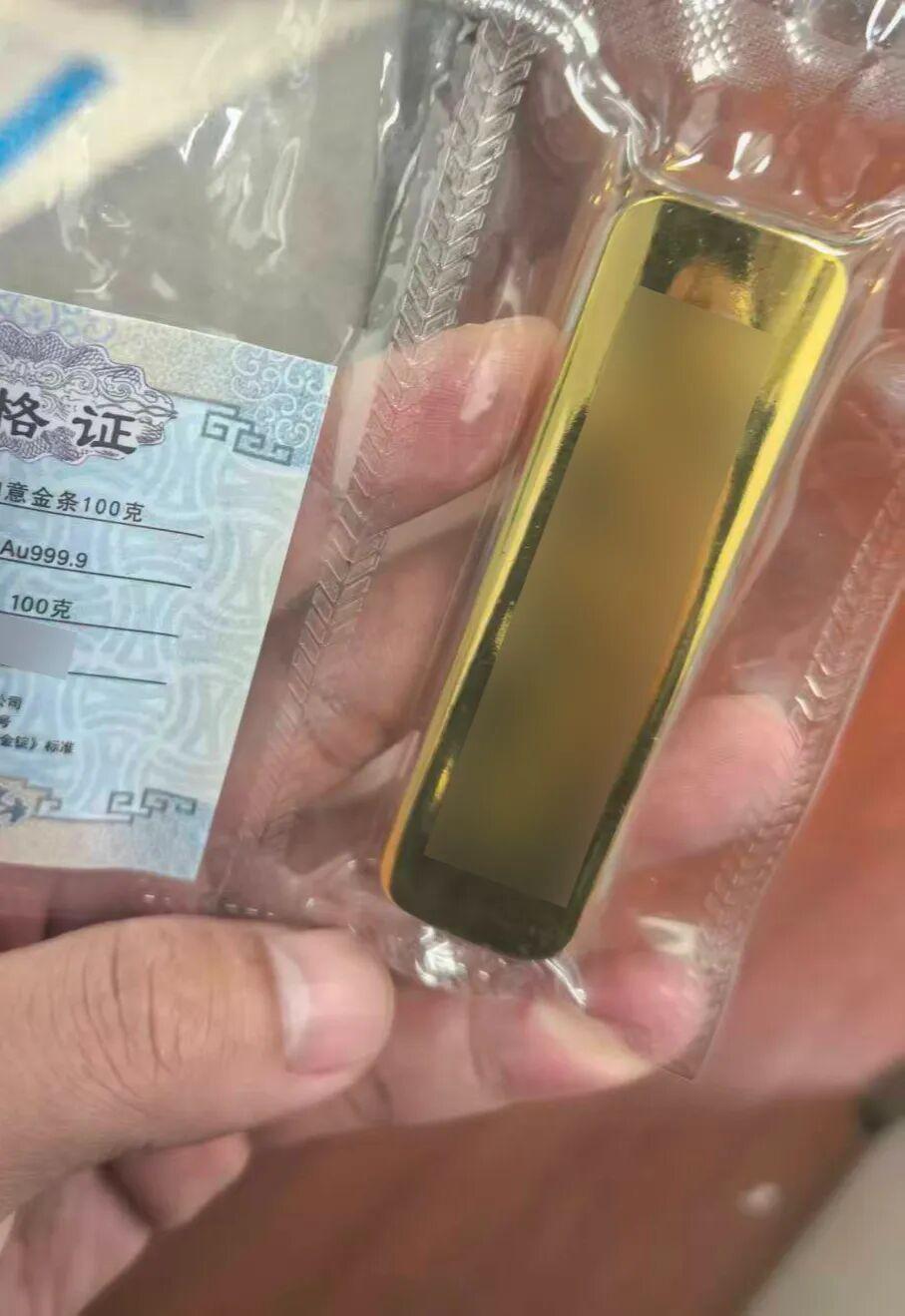 男子向亲友出示所谓的 " 金条 "。