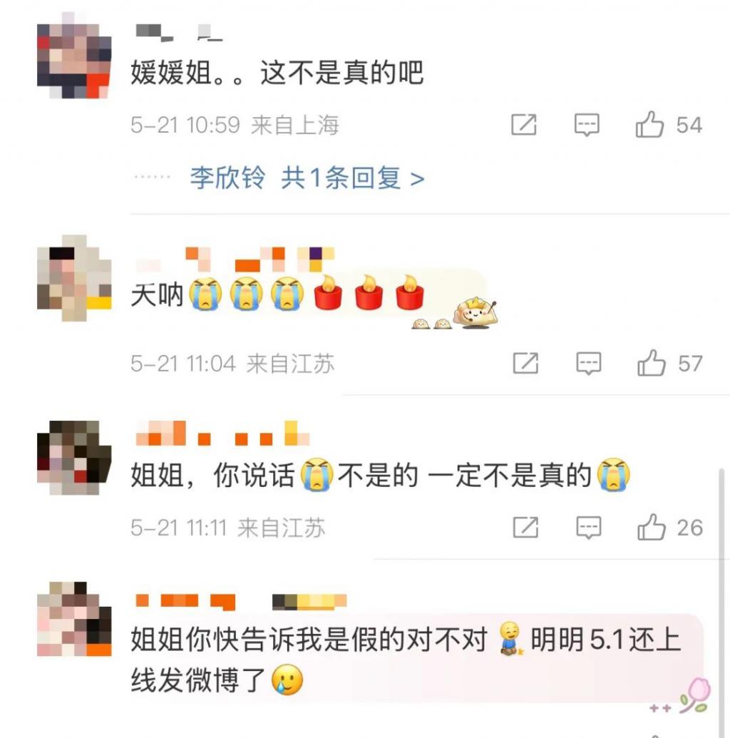 不少网友在这条微博下留言,表示难以接受她去世的消息。