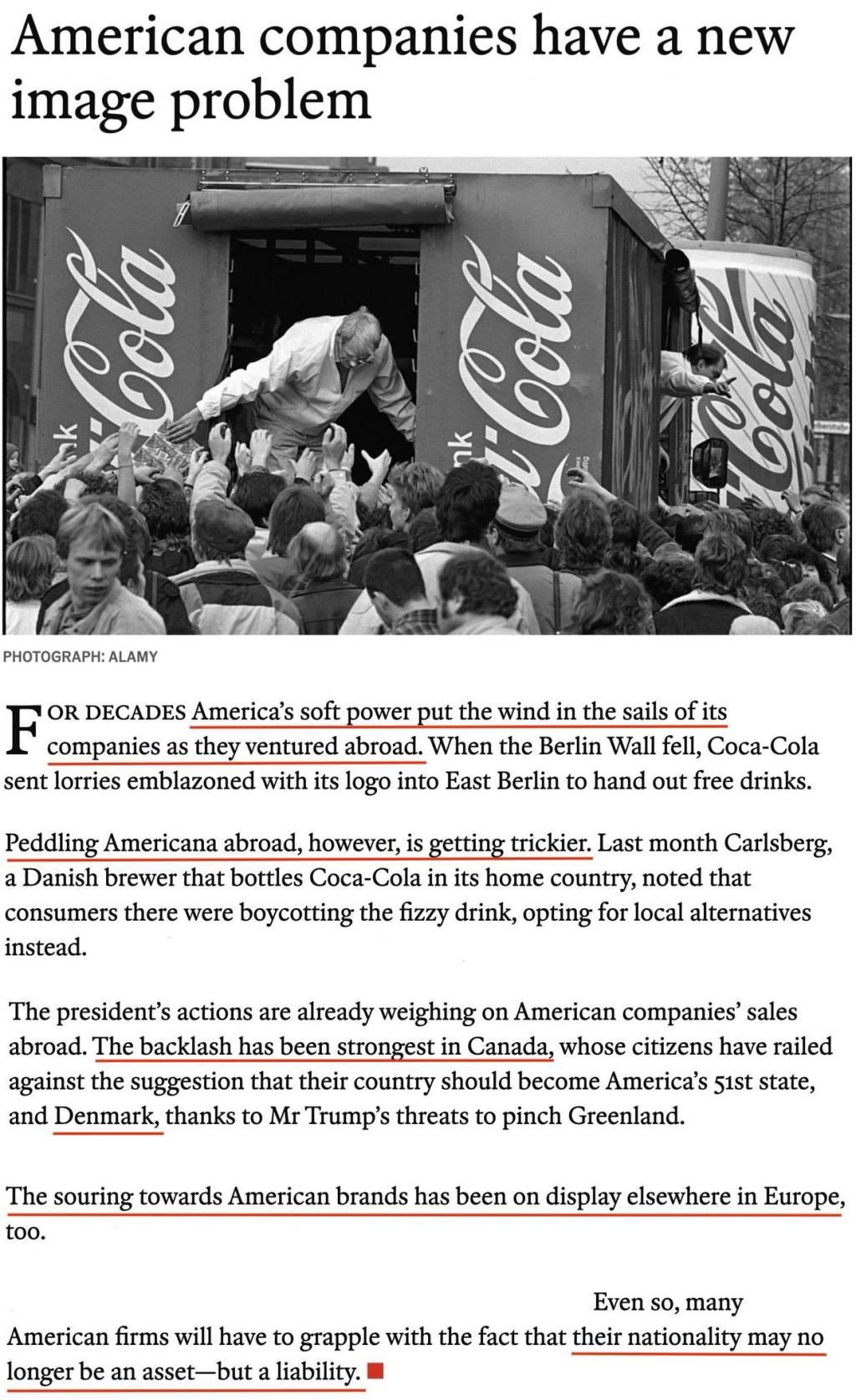 美国的行为已经开始影响美国公司的海外销售额。被美国威胁吞并领土的加拿大和丹麦的抵制情绪最强烈。不仅如此,欧洲其他地区的消费者对美国品牌的反感也显现出来。