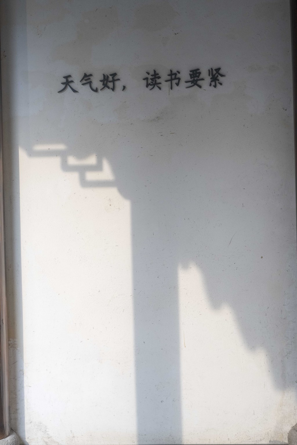 2025年5月24日,马相伯故居一处白墙上写有马相伯的一句话:“天气好,读书要紧”。澎湃新闻记者 许海峰 图