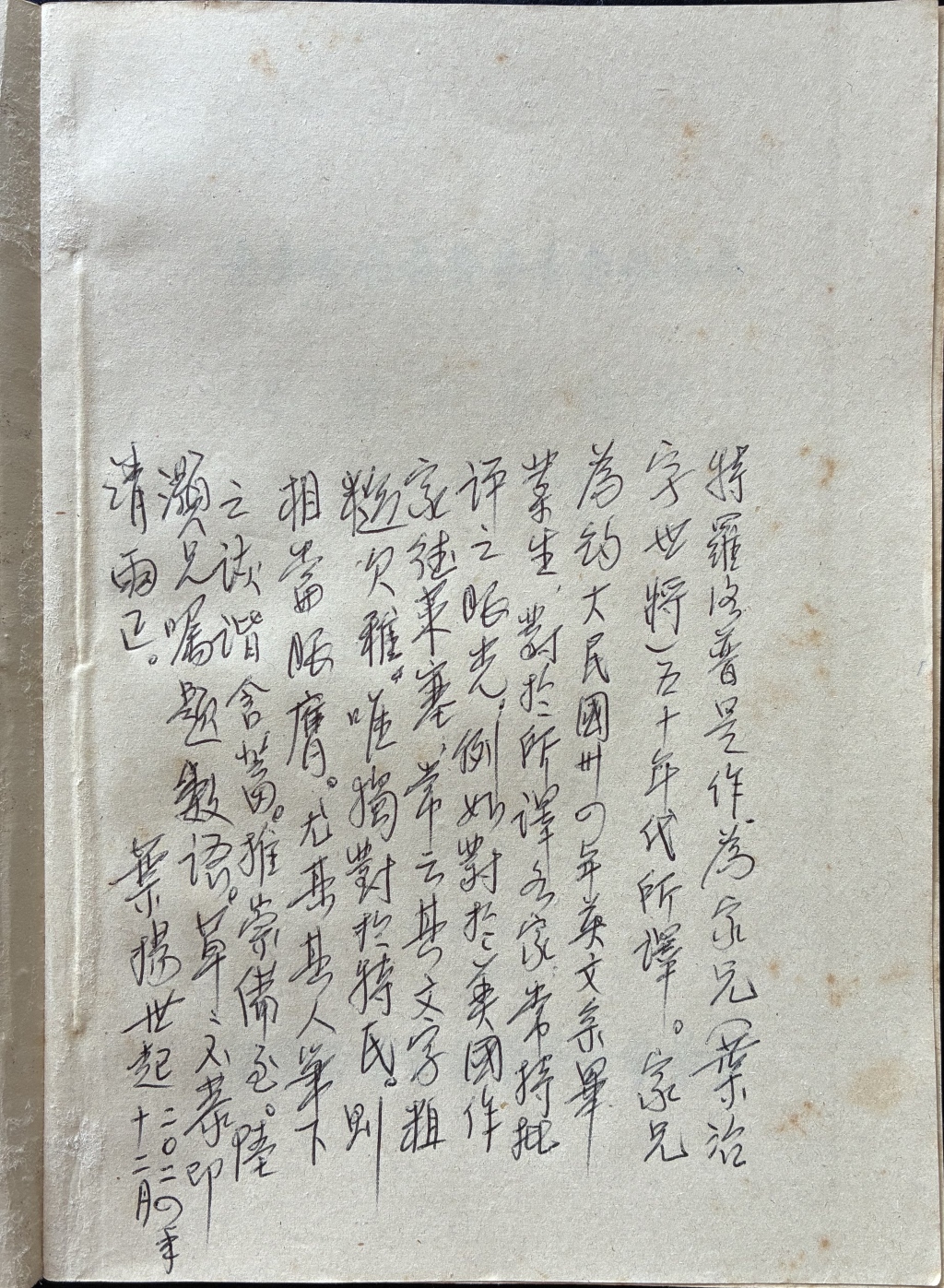 主万先生本名叶治,他的弟弟叶扬先生,长期任教美国加州大学河滨分校,前些年常常回国,我和他交往更密,听他讲了不少老叶家的往事,还约他写了很多文章。前两年我在旧书店淘到一本《巴彻斯养老院》,新文艺出版社1957年5月的初版本,品相不错。去年年底叶扬先生回国探亲,我请他在书上写几句话留作纪念。叶扬先生在前衬页上题写:“特罗洛普是作,为家兄(叶治字世将)五十年代所译。家兄为约大民国卅四年英文系毕业生。对于所译各家常持批评之眼光,例如对于美国作家德莱塞,常云其文字粗糙欠雅。唯独对于特氏,则相当服膺,尤其其人笔下之诙谐含蓄,推崇备至。陆灏兄嘱题数语,草草不恭,即请两正。叶扬世起,二〇二四年十二月。”