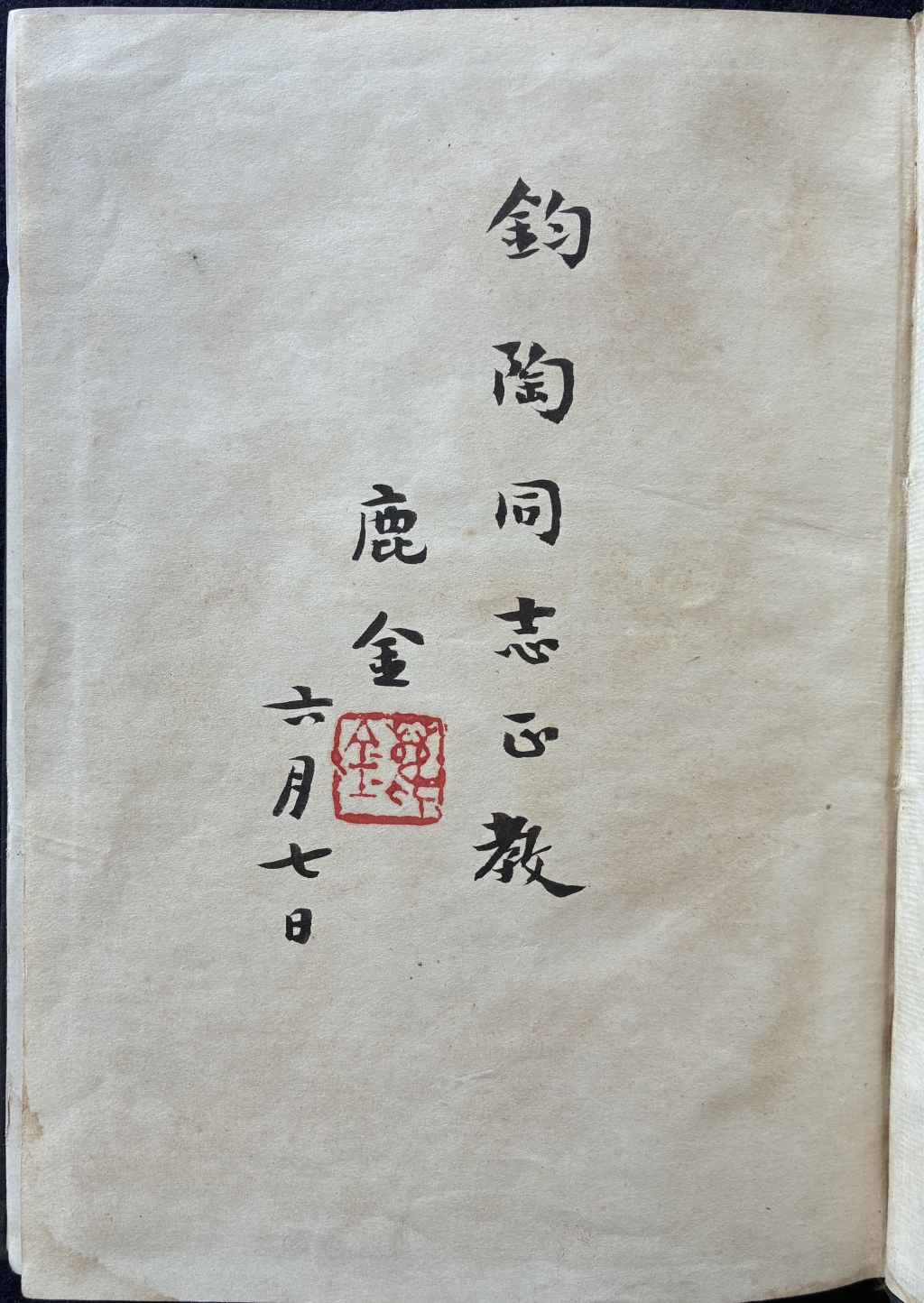 也差不多上世纪八十年代后期,我认识了翻译家叶麟鎏先生、吴钧陶先生。好友韦泱先生送了我这本《圣诞节前夜》,果戈理著,鹿金译,平明出版社,1955年5月初版初印。鹿金是叶麟鎏先生的笔名(取名字的一半)。难得的是,书的前衬页有译者毛笔题词:“钧陶同志正教。鹿金,六月七日”。这是本精装本,据韦泱转述吴钧陶先生的介绍,是当年译者自己拿着布料到厂里去改装的。封面上的书名和作者名,显然也是出自译者之手,与题词一样笔迹。这是吴老先生以前送给韦泱,韦泱转赠给我的。吴先生和叶先生相识于上世纪五十年代初,先后进入巴金主持的平明出版社,吴先生曾在《忆平明社同仁》一文中说,叶麟鎏毕业于暨南大学英文系,是周煦良教授的学生,他与周煦良教授有共同的爱好,淘旧画、写书法、喝喝老酒、吃吃美食等,平时戴着眼镜,留着长发,指甲也长长的,背有些驼,很像个“遗老”雅士;苏州人,有点苏州才子的味道,一手毛笔字写得精致玲珑,说起古玩来很是投入(韦泱采访整理《吴钧陶先生忆平明社同仁》,巴金故居主办《点滴》2018年第六期)。