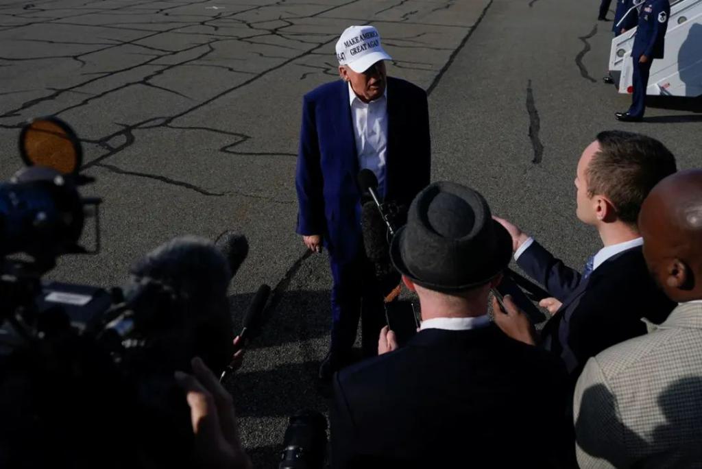 ▲ 5 月 25 日,特朗普在新泽西州莫里斯敦市立机场登上空军一号前向媒体发表讲话。(图源:路透 . 社)