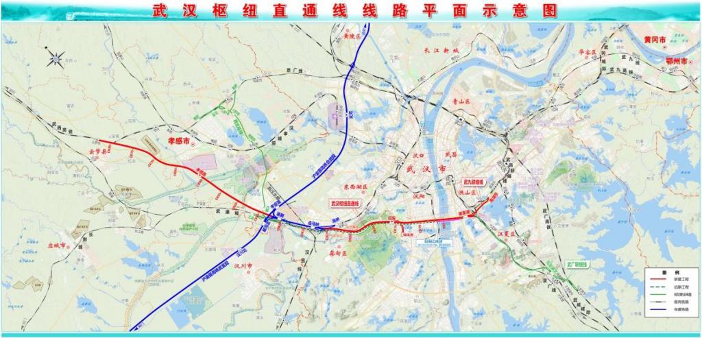 武汉枢纽直通线走向示意图 图片来源:武汉发布