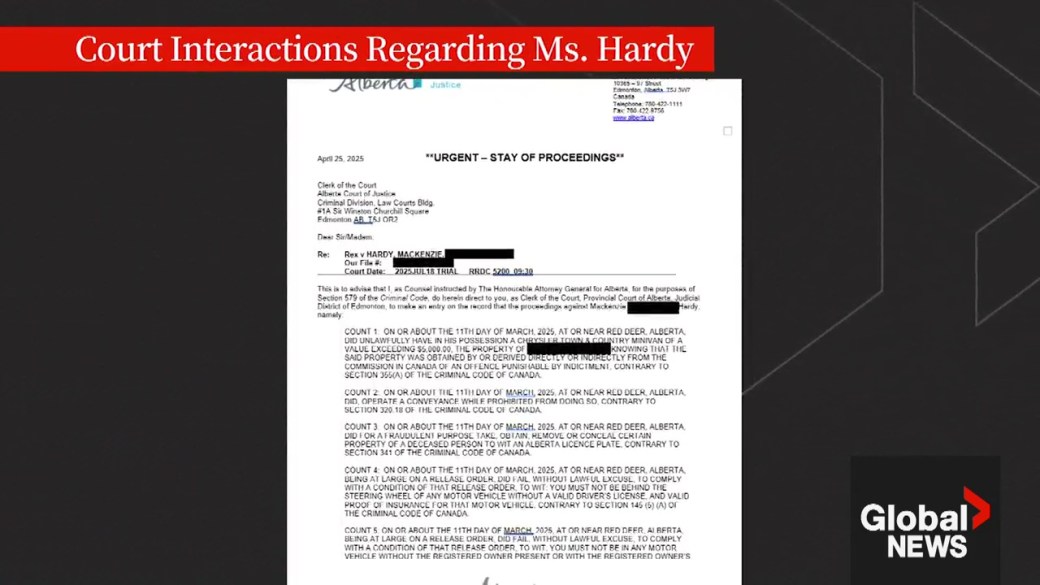 其中包括似乎是那封信的内容,以及与指控有关的法庭文件,以及看起来与阿尔伯塔司法系统工作人员的互动。这些邮件的日期是4月25日,也就是哈迪从埃德蒙顿东北部监狱释放的那天。
