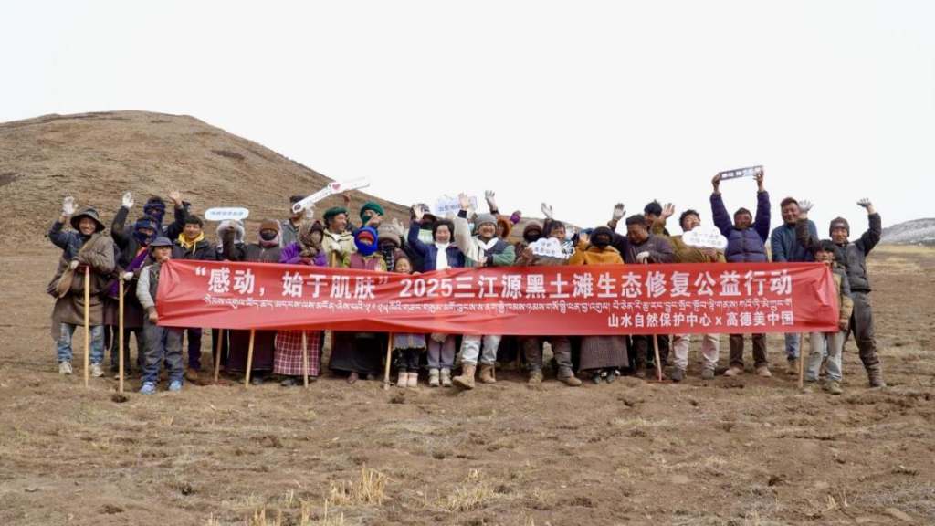 2025年5月22日,在第25个国际生物多样性日来临之际,由山水自然保护中心发起、高德美作为捐赠方支持的“感动,始于肌肤”三江源年保玉则草场生态修复与社区行动项目正式启动。项目在青海果洛藏族自治州年保玉则平均海拔4200米的黑土滩地带举行了现场仪式。