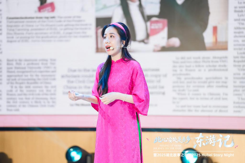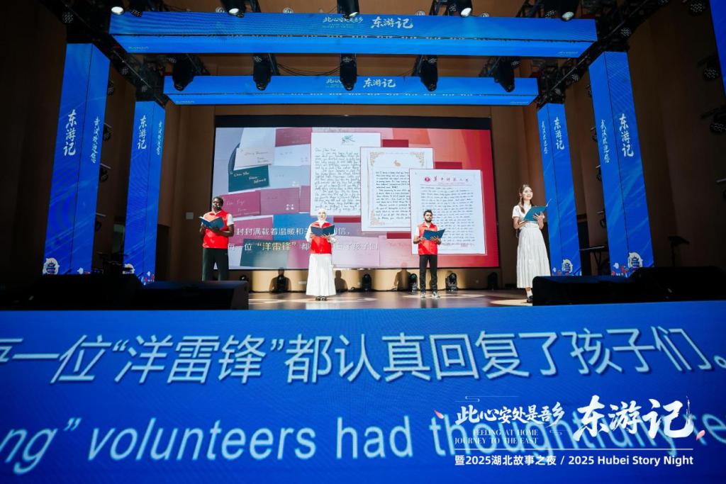 " 活结们,七了冇?" 在数字人楚音 Q 萌的武汉方言问候中," 此心安处是吾乡 ˙ 东游记 Journey to the East" 暨 "2025 湖北故事之夜 " 正式拉开帷幕。5 月 29 日晚,近 400 名来自湖北各高校的中外学子和外籍友人在华中科技大学光电学院报告厅共同演绎一场跨文化交流的盛宴。9 位来自不同国家的留学生和外籍网红博主登台,深情讲述自己与中国的奇妙缘分。