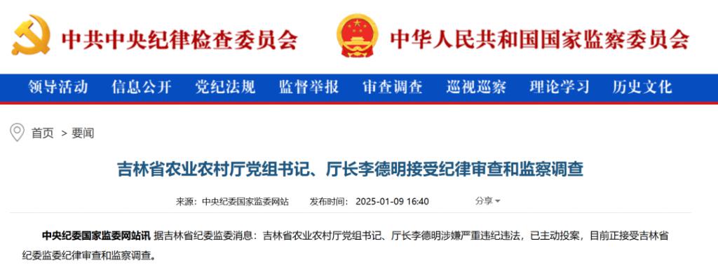 李德明出生于 1970 年 7 月,曾任白城市住建局局长,2019 年 4 月出任通榆县委书记,2021 年升任市委常委,并继续兼任通榆县委书记。2023 年,他再次升迁,担任省农业农村厅厅长,直至 2025 年 1 月主动投案。