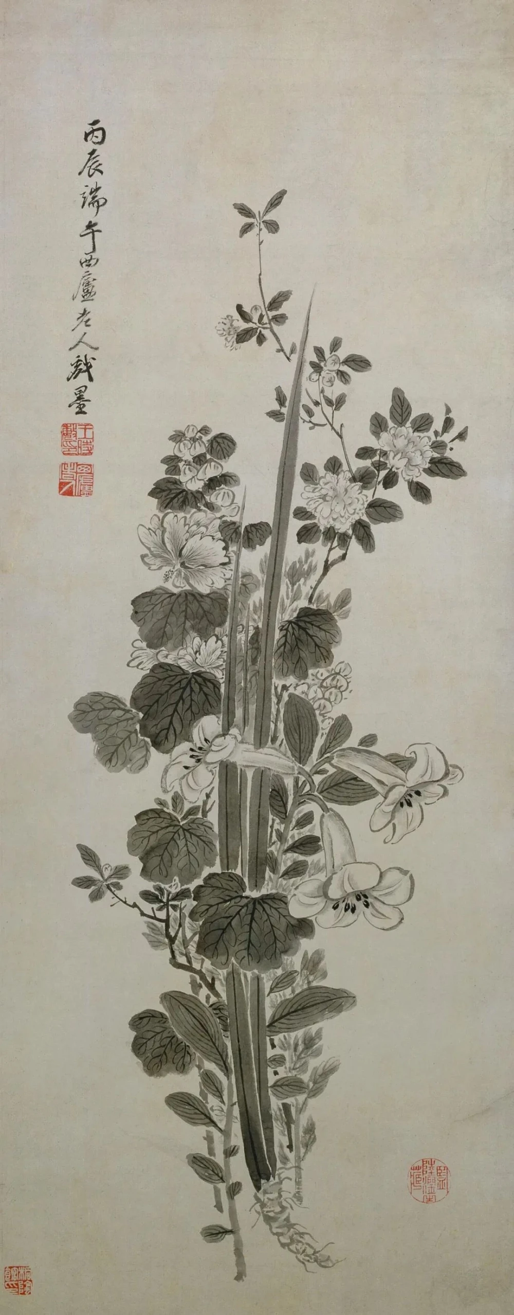 “五瑞”(通常指菖蒲、艾草、榴花、蜀葵、蒜头,有时也有栀子花)作为抑制“五毒”的植物系统,在郭似壎、王时敏等画家作品中形成稳定组合。