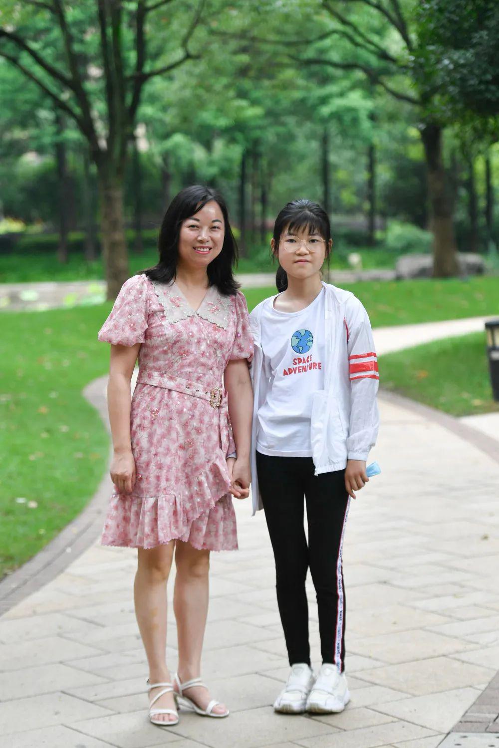 吴菊萍(左)与妞妞在浙江杭州一小区里留影(2021 年 7 月 1 日摄)。