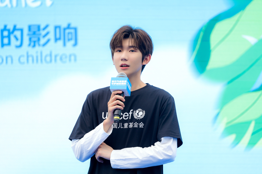 在启动会上,联合国儿童基金会大使王源分享了他在2024年探访马拉维的经历。在探访中,王源看到了气候变化对儿童的影响以及联合国儿童基金会为应对这一问题所开展的工作。