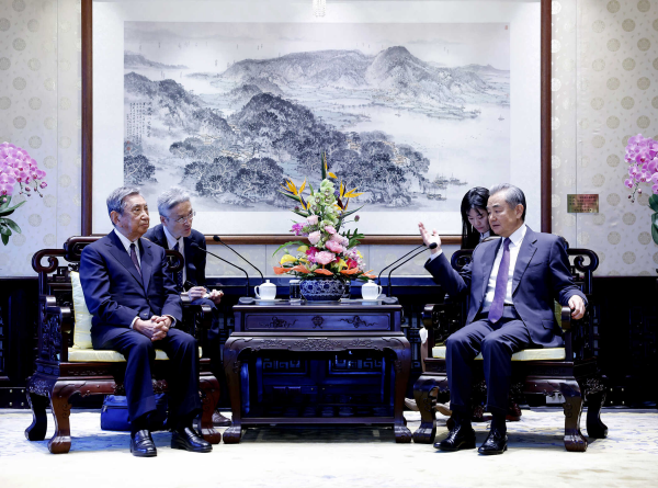 4日,中共中央政治局委员、中央外办主任王毅在京会见日本国际贸易促进协会会长河野洋平。