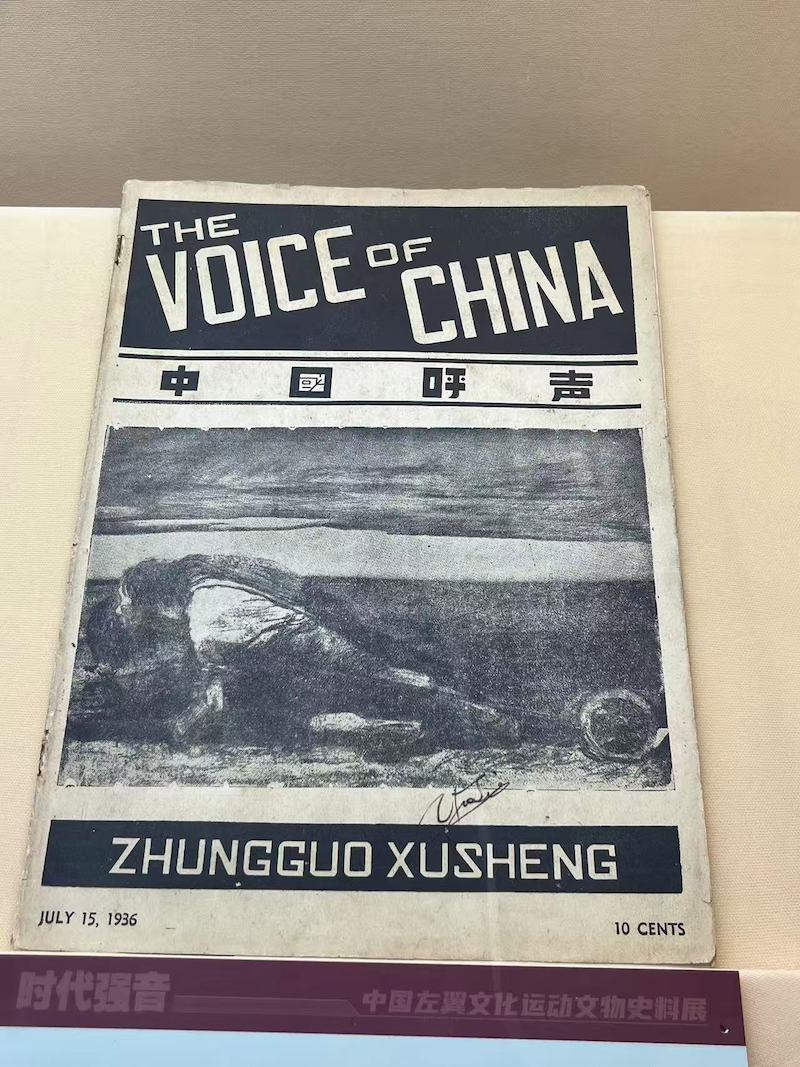 尾声处,有一个展柜讲述了左翼文化的国际影响与交流,不少展品难得一见,如《中国呼声》是从国外的视角讲述左翼文化,以及茅盾的小说《大过渡期》被翻译成日语版本等。