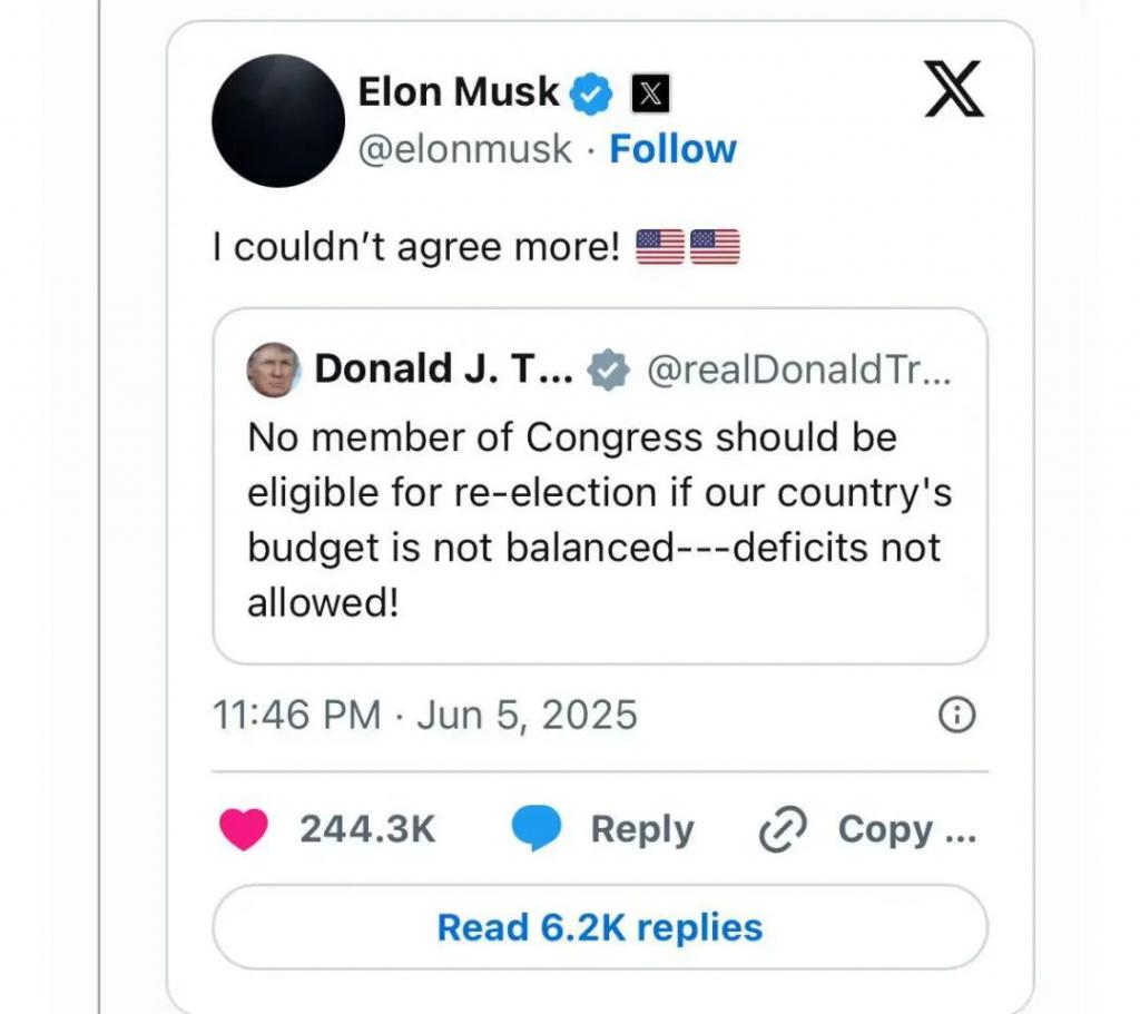 马斯克则连发数条,呼吁美国缩减财政预算。