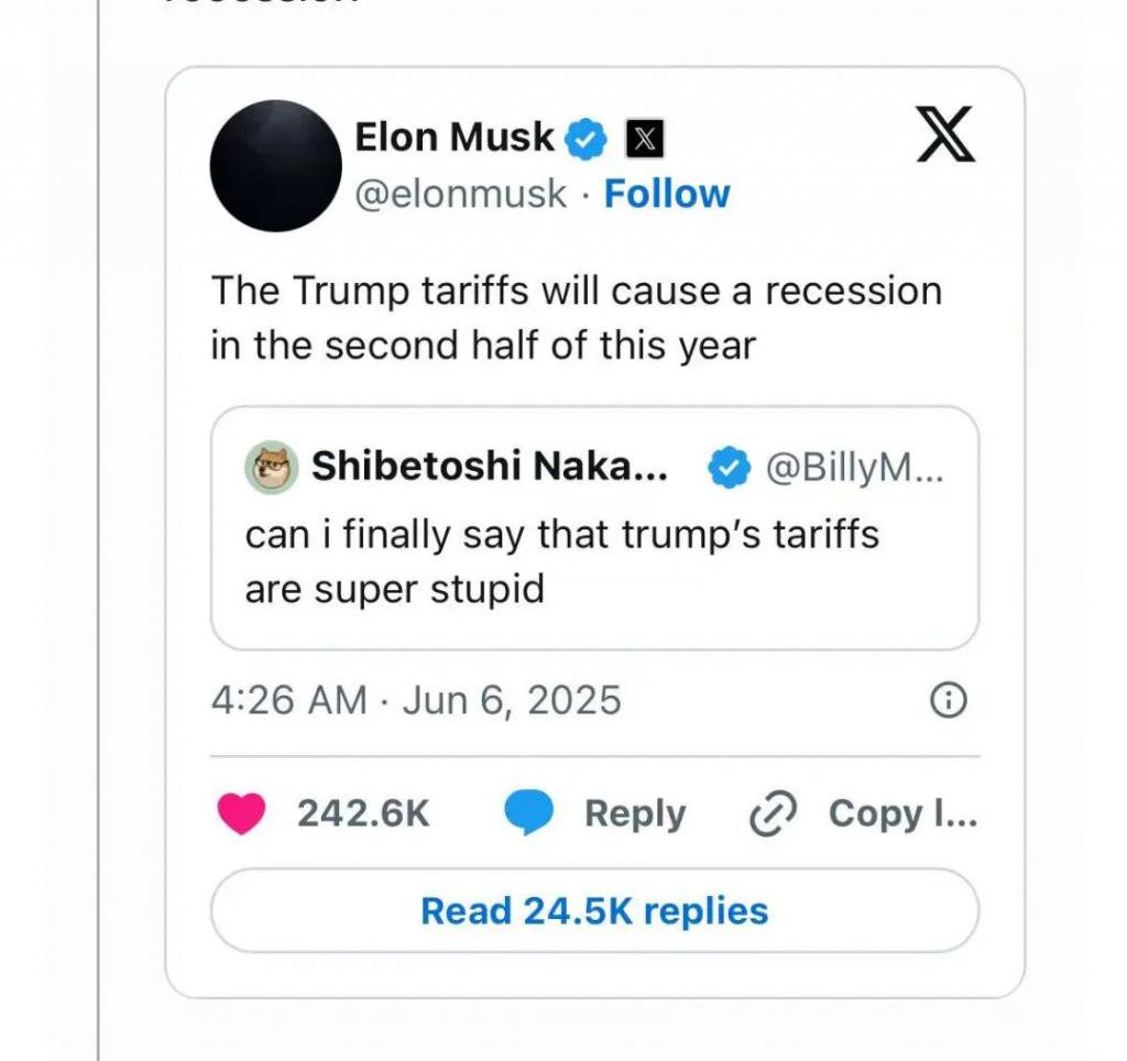 各种焦头烂额之际,马斯克怒斥特朗普的关税政策愚蠢。但这时候他还没直接攻击特朗普,而是大骂特朗普的贸易顾问纳瓦罗 " 比砖头还蠢 "。