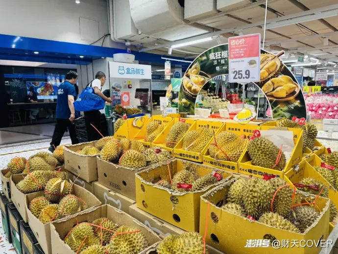 几天前,“榴莲价格出现腰斩”的话题直接冲上微博热搜。据了解,6月以来,全国多地榴莲价格出现大幅下跌,泰国金枕榴莲的批发价一个月降了40%~50%,北京、广州等地一斤榴莲的零售价从60元腰斩到27元左右。