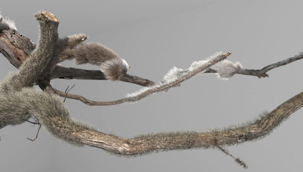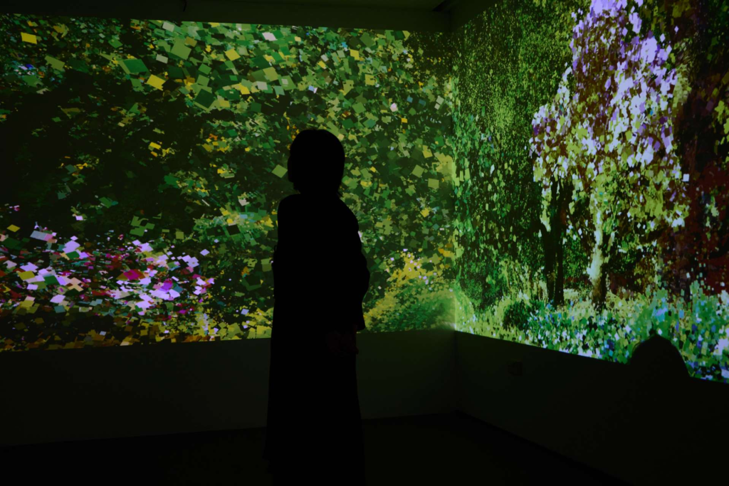 在生态与人文叙事交汇处,Redblack D. Lawrence 的绘画系列将自动绘画与诗意文本交织,如同“精神显影”,探讨人类直觉与灵性命题。陈若璠则把“慢时间”嵌入3D建模影像《暖树》,如树液般缓慢流淌的像素与真实木纹相融合,让观众体会数字与现实界限的逐渐消解。