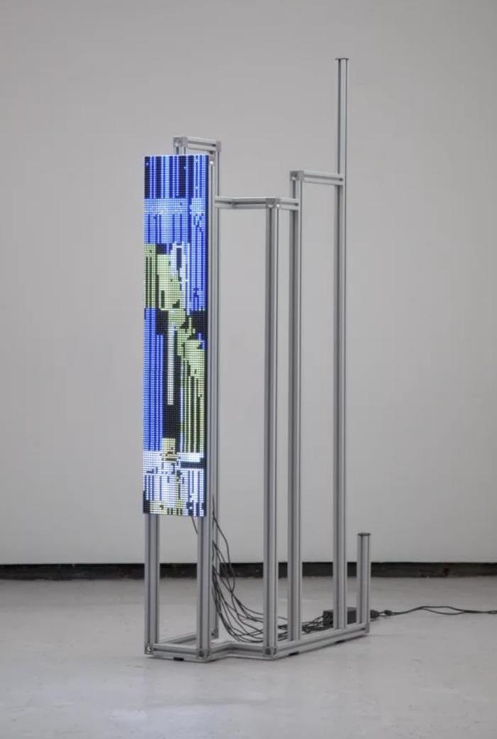 金融科技河段由 Fabio Lattanzi Antinori 占据。他将伦敦、上海与香港股市的数据转译成星体图装置,实时跳动的数字宛若河流波动中的资本曲线。旁边并置的LED 雕塑《Masters and Slaves》系列则直面大数据时代下全球资本逻辑所带来的严峻诘问。