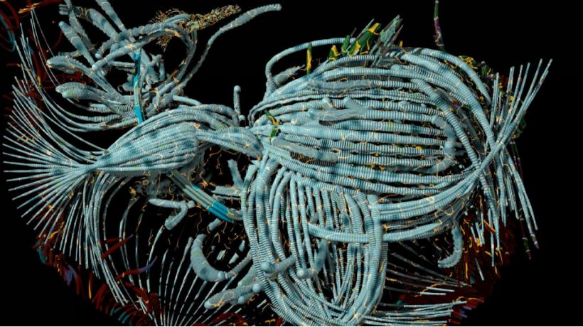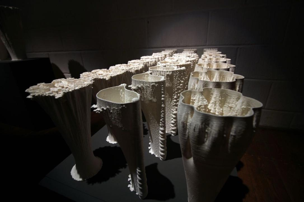 在人工智能与生物演化的水域中,William Latham 的《Mutator Vortex VR (2022 2023)》和 Andy Lomas 的细胞雕塑并肩而立:前者邀请观众沉浸于变异算法编织出的奇观宇宙,后者则通过复杂的方程式,以3D打印呈现可触摸的生命形态。这两件作品如同河流两岸,以生成逻辑回应着“生命编码可能性”的终极追问。