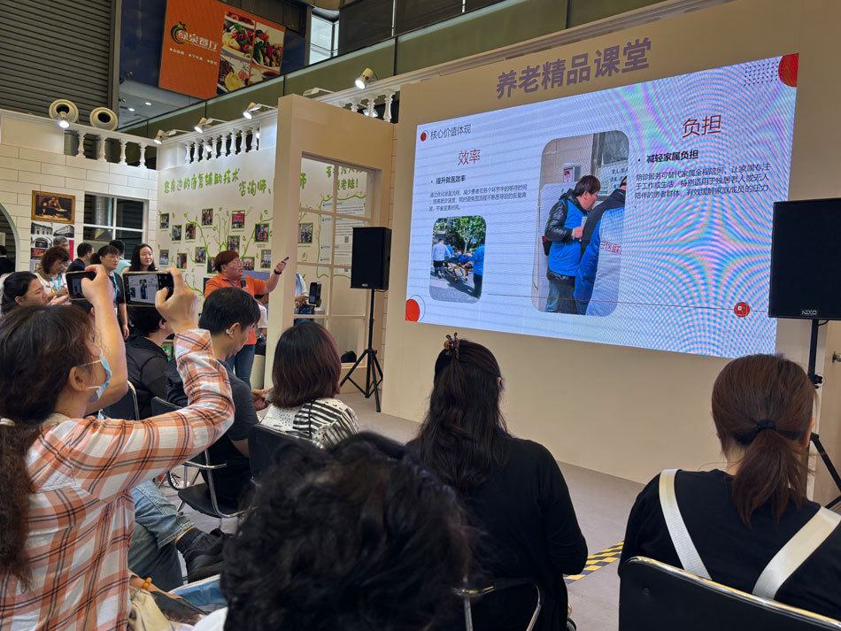 更软性和更普适性的服务也被搬进了老博会。在上海老博会的党群服务站内,同步还在进行养老精品课堂、政策服务咨询等活动,养老顾问、康复辅具咨询师、适老化改造师在现场给参展观众讲解答疑,还有陪诊师坐镇,教老人如何申请陪诊服务等。