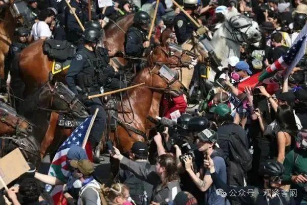6 月 14 日,洛杉矶,骑警在清场时与抗议者爆发冲突 《纽约 · 时报》