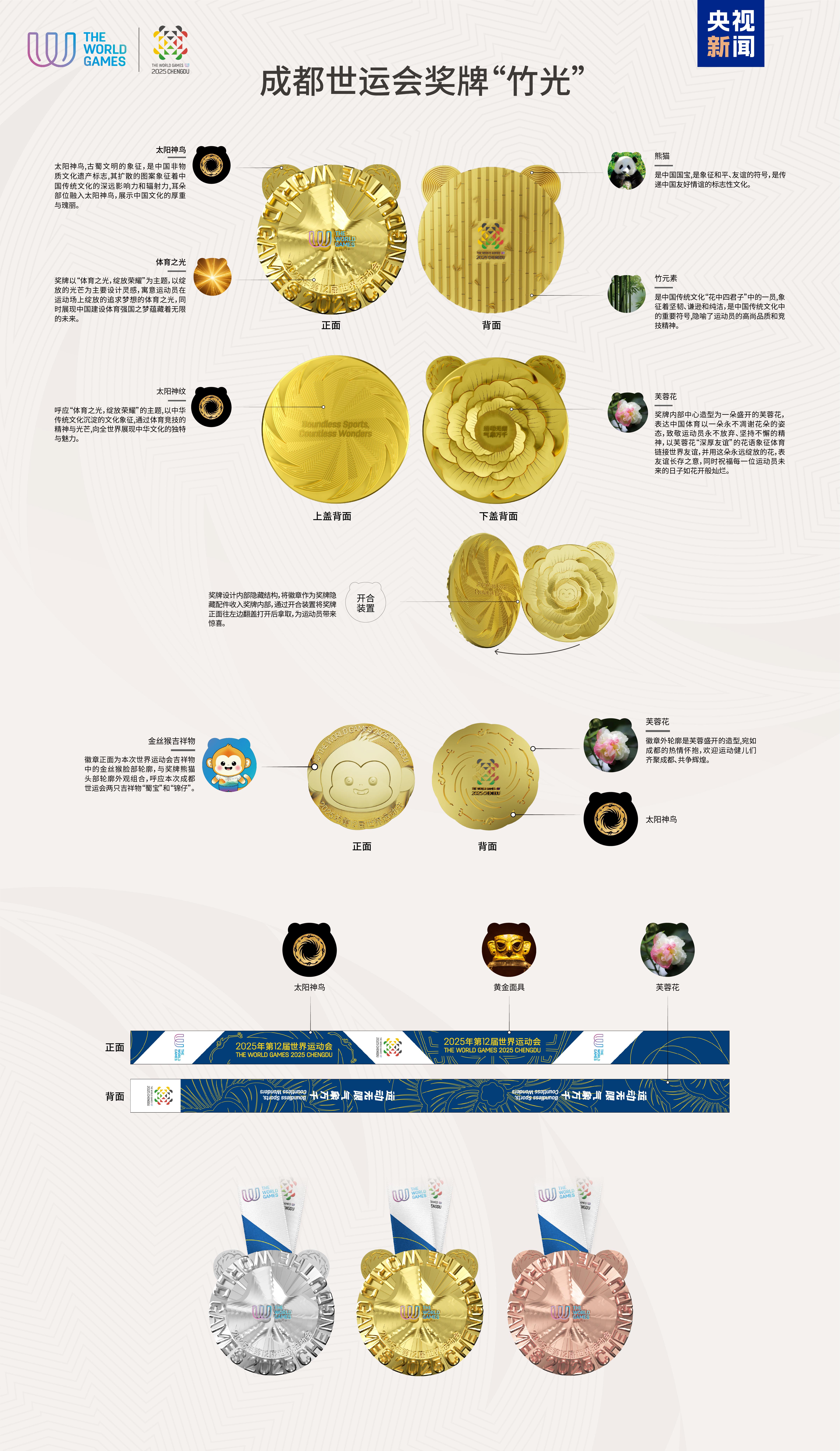 当胜利的光芒与分享的温暖相遇,2025年第12届世界运动会(以下简称“成都世运会”)奖牌“竹光”给出了最动人的诠释。6月19日,承载着独特“分享”理念与深厚敬意的赛事奖牌——“竹光”正式亮相!