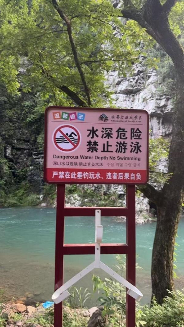 景区一工作人员介绍,景区是 4A 级,内设多个警示牌,提醒游客不要下水嬉戏。景区内也设有多个监控,但监控大多照在路面区域," 水区域本身就不是活动范围区域。"