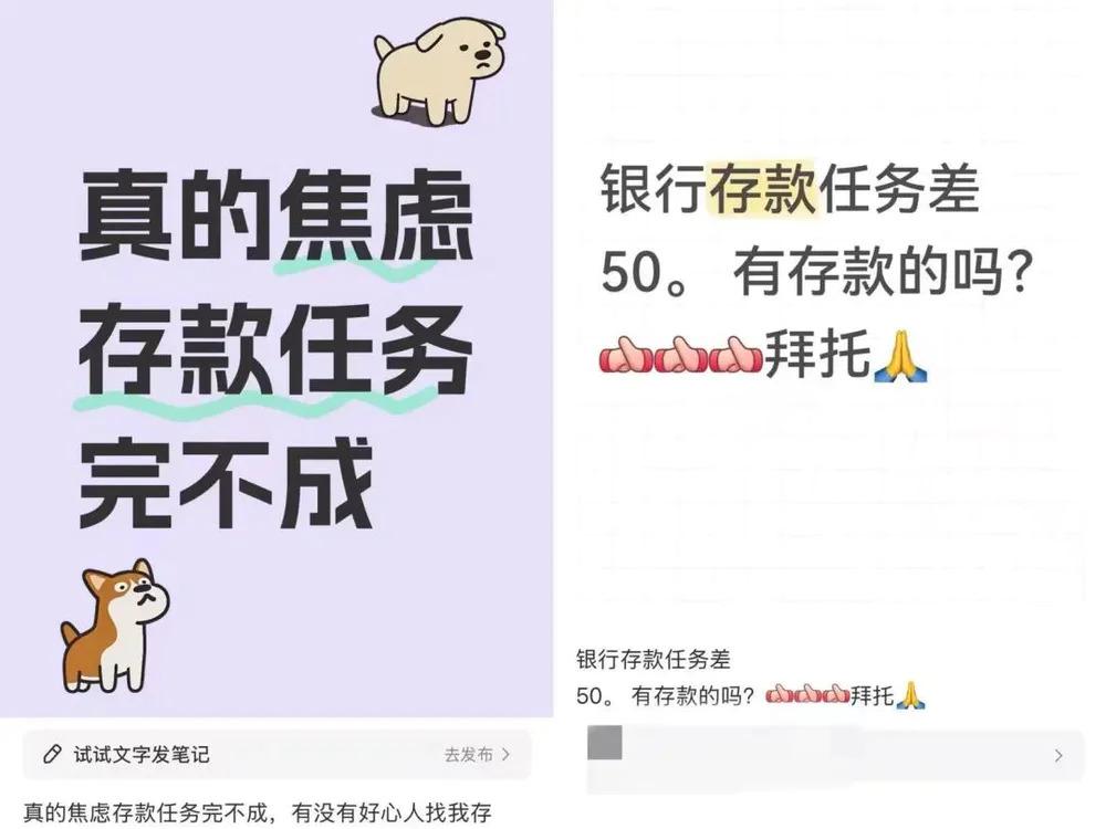 考核压力之下,近期社交媒体上涌现出大量 " 月末求存款 " 的帖子,不少银行员工为了拉存款不惜自掏腰包来 " 贴息 "。