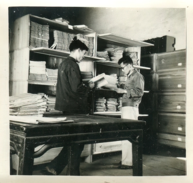 1963年10月,郭松义(右)于曲阜孔府档案室查阅资料。