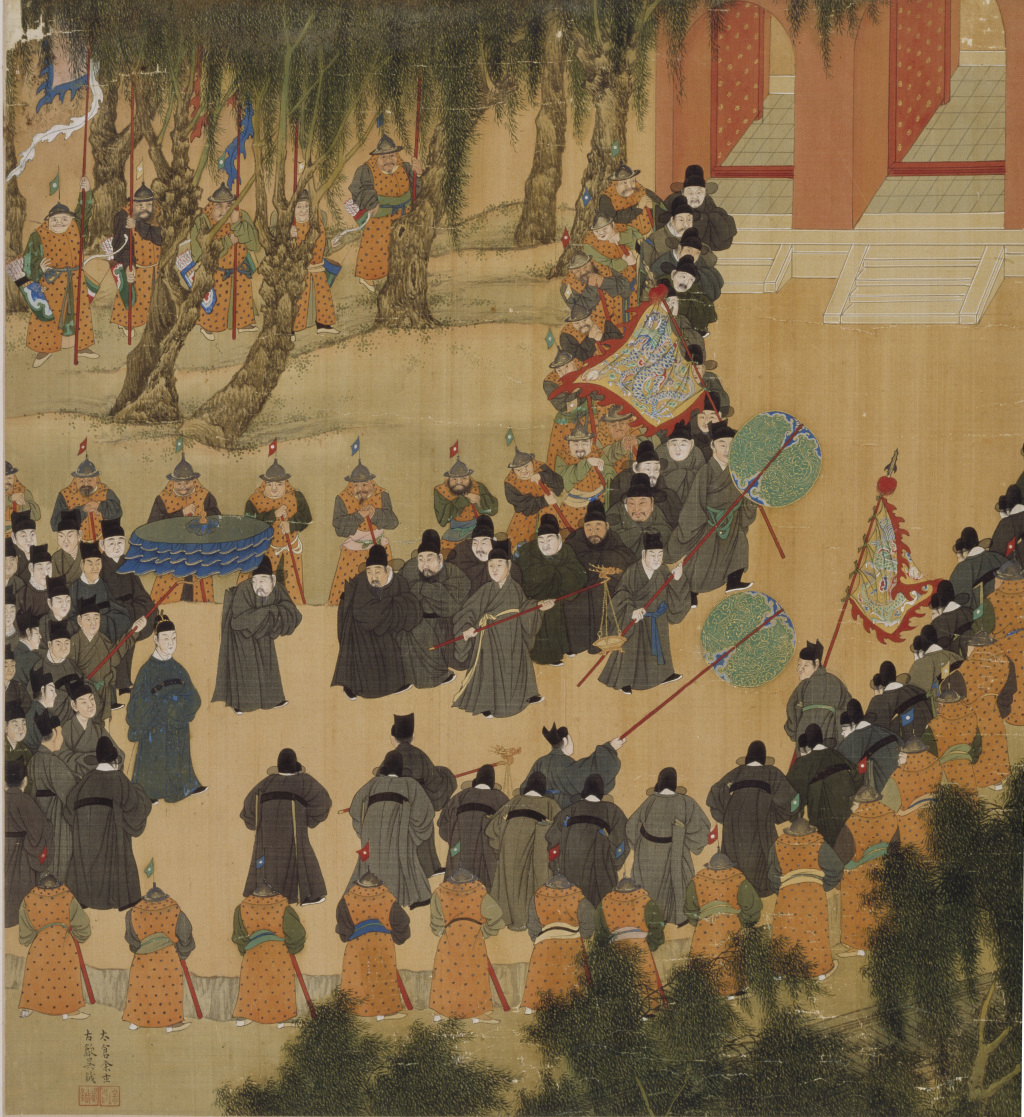 图7. 明《徐显卿宦迹图·步祷道行》(局部),描绘了明神宗皇帝为了祈雨所进行的“步祷”,是中国古代帝王通过自我惩罚进行祈祷的典型案例。