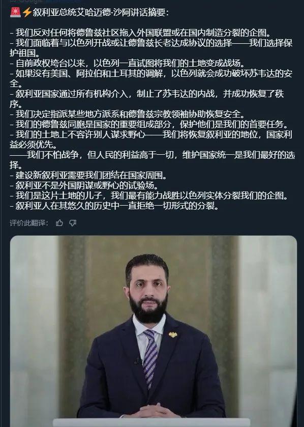但是,你答应以色列的条件,后面的麻烦就在于,朱拉尼手底下的人根本不会听头。你跟他们说,我们要忍辱负重啥的,他理解不了,他屠就完了,屠一切看不顺眼的人,对德鲁兹人这种看起来的宗教异端尤其不例外,而朱拉尼还不好强硬干涉。