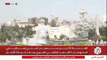 第一个目标是位于大马士革市中心倭马亚广场旁边的叙利亚军队总参谋部,现在也是叙临时政府军队总部所在地。以色列空军这回大概是上了 2000 磅重磅炸弹,把叙军总参谋部的建筑物直接扬上了天。话说这时候,倭马亚广场对面,就有电视台的女主持人在直播,被吓得从椅子上跌了下来。