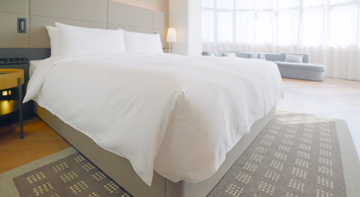 高端是藏在细节里。拿最基本的铺床来说,很多美式酒店真的是东施效颦,还是传统的那种西式铺床方式,还是把被角塞在床垫底下,纯正刻板的原教旨主义。这完全不符合中国人的睡眠习惯,出差本身就是舟车劳顿,好不容易钻进被窝发现被锁的时候,真的有一种木乃伊刚装进绷带里的无力感。城际采用的是无折脚包床,躺进去就能睡,丝滑无感,就跟家里一样,这就是品质感。城际的床垫也是酒店行业的顶配:丝涟,软硬适中,又有足够的支撑度,睡个好觉绰绰有余。