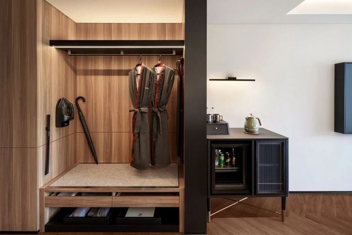 关键是很多酒店功能区设计不合理,城际一平米的衣帽间就藏了很多精巧实用的设计:衣帽区足够宽敞,活动的礼服、正装衬衣都可以很好地挂舒展开,还有我最爱的挂烫机,熨衣板,就算衣服稍微有些褶皱,也能很好的烫熨开。鞋拔子,擦鞋海绵,这些呵护假面的设备一样不少。在酒店是睡衣+拖鞋,出门又是精致的假面小伙。