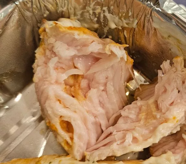 “我告诉她放下它去洗手,然后我立即打电话给烤肉店,告诉他们这是生鸡肉,但他们说不可能。当我把艾思梅盘子里的鸡拿给他看时,他承认是生的,我也知道是生的。他们无法与它争论。它还在咯咯地叫。