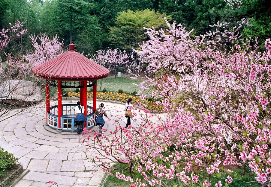 唯一一个建在山顶上的植物园——庐山植物园亦是春日好去处,繁花似锦,犹如上帝打翻了调色板,五彩斑斓,将春色绽放到极致。此外,方竹寺内百年树龄的樱花、五老峰下的油菜花海等景点同样值得打卡。