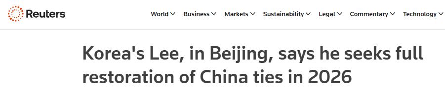 韩国总统李在明正在对中国进行国事访问,多家外国媒体报道了1月5日中韩两国元首举行会谈。路·透社的报道...