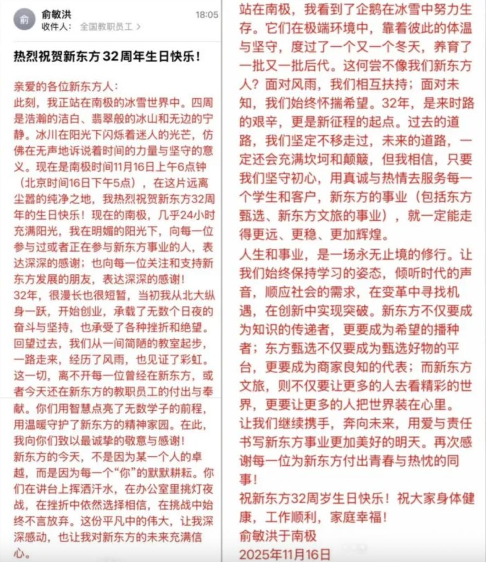 俞敏洪在南极讲团结,员工在工位感受寒意科学