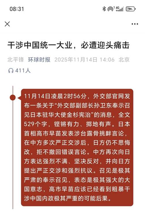 11月14日凌晨2时56分,外交部官网发布一条关于“外交部副部长孙卫东奉示召见日本驻华大使金杉宪治”...