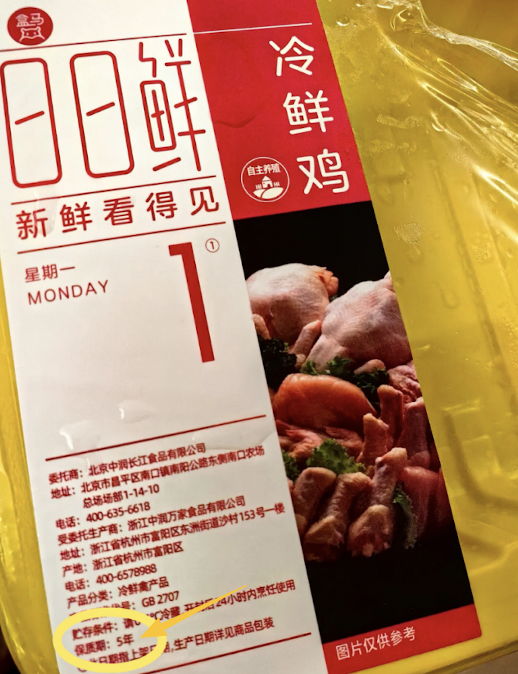 冷鲜鸡保质期长达5年?盒马委托商回应:印刷失误 科学