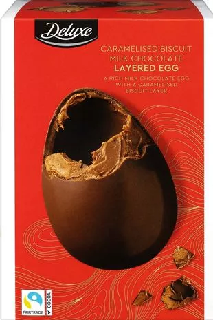 对于喜欢买便宜货的人来说,今年的最新产品是豪华分层蛋,有两种口味可供选择:咸焦糖牛奶巧克力和焦糖饼干牛奶巧克力。这些美味的复活节彩蛋将于3月16日(周日)上市,售价仅为8.99英镑。