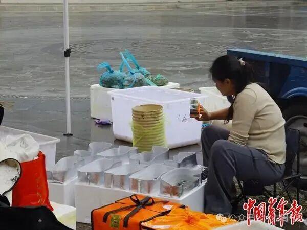 11 月 7 日,秋兰在螃蟹摊里打包发货。中青报 · 中青网见习记者 黄晓颖 / 摄