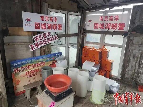 蟹塘边的木屋里,保留了直播的布置。中青报 · 中青网见习记者 黄晓颖 / 摄