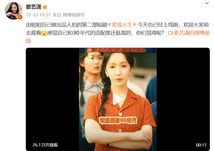 演员娄艺潇在微博发布的长文,可以视为一份旗帜鲜明的“入局宣言”。她写道:“对于演员来说,戏不分长短,在舞台上、在摄影机前,就算一分钟也是戏;其次,就是我个人看好短剧的发展前景。”这首先从职业尊严和发展眼光,回应了“身份”与“前景”的双重质疑。更关键的是,她的行动已超越了演员身份:“这次进入短剧行业我也不仅仅是以演员的身份,而是成立了一个专门孵化短剧的厂牌,自己当出品人。”从担纲主演到亲自出品,明星们正将他们在传统影视领域积累的经验、资源和审美,直接注入短剧的创作源头,这正是对“质量粗糙”最有力的回应。