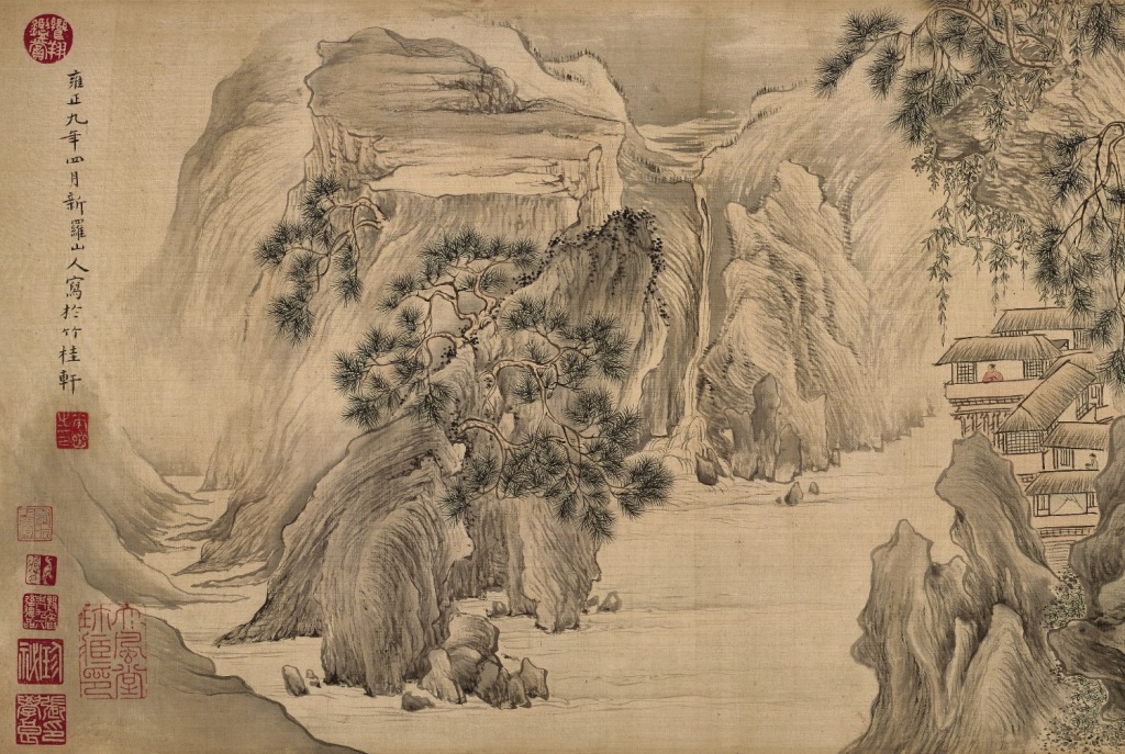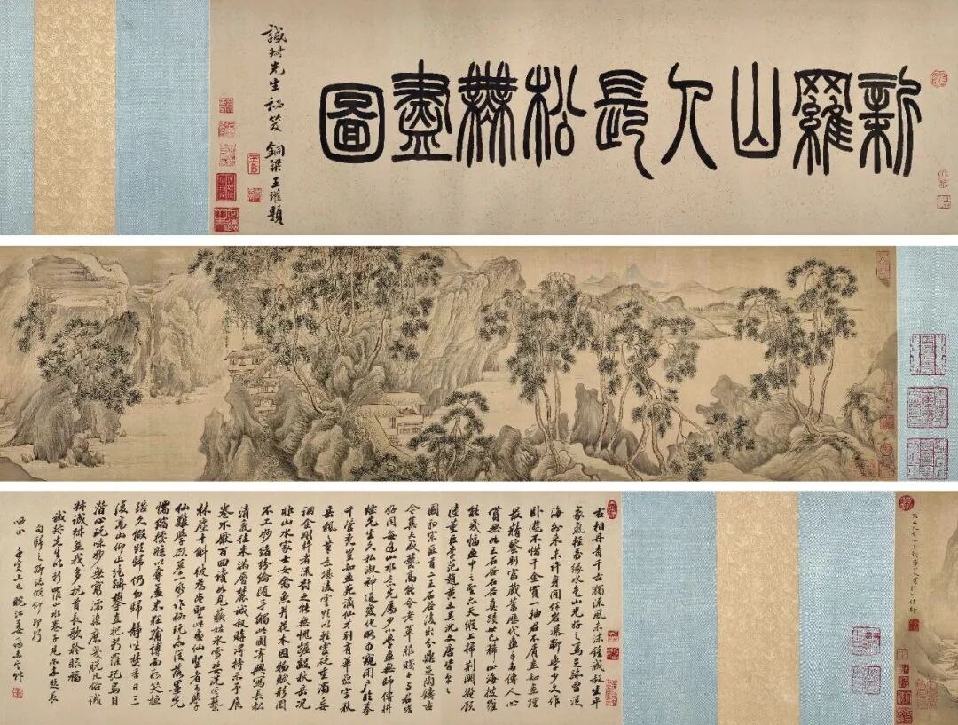 新罗山人山水、人物、花木虫鱼无不精能造极,是清初扬州诸家中最受后世鉴藏家珍赏宝爱的一员。此卷写长松叠嶂,层岩空谷,云泉出没,境界悠远,气象华美,是其画作中极精之品。曾为张大千、张学良、王季迁等著名鉴赏家递藏,原装旧裱,藏印累累,而保存精良,至今纸墨如新,令人赏心悦目,触手难忘。