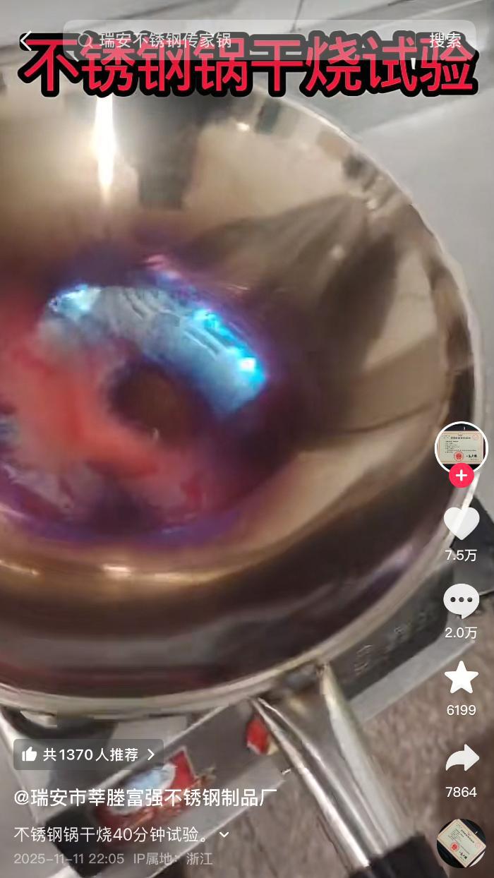 厂家更新不锈钢锅干烧试验视频。视频截图