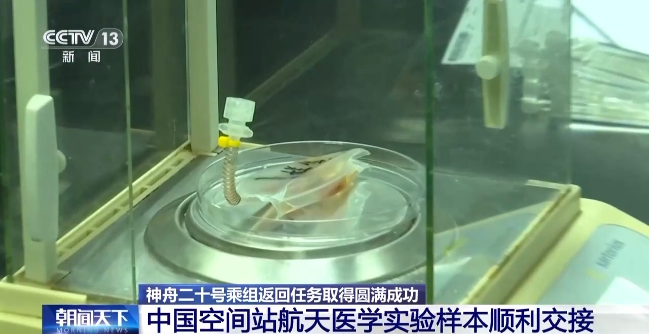 此次交接的是神舟二十号和天舟九号2次任务的航天医学实验样本,总重量3.2公斤,包括血液、尿液、粪便、唾液、咽拭子、微生物和细胞共7类199份样本,将支撑19项空间站航天医学实验项目的研究实施。参与实验的19家科研单位,将针对空间环境对人体骨代谢交互调控、核心菌群演变、大脑稳态维护、生物节律和睡眠的影响等问题,从分子、细胞、器官等多层次,系统分析阐释失重状态下机体功能活动的发生规律、调控及机制。