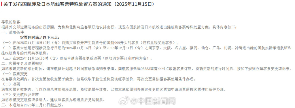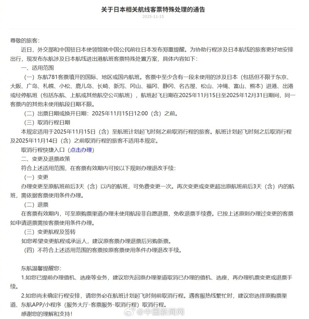 首页 > 生活 三大航司发布日本航线客票处理通知:机票可免费退改 15日,中国南方航空股份有限公司发布《关于日本航线客票特殊处理的通知》,中国国际航空股份有限公司发布《关于发布国航涉及日本航线客票特殊处置方案的通知》,中国东方航空股份有限公司发布《关于日本相关航线客票特殊处理的通告》。