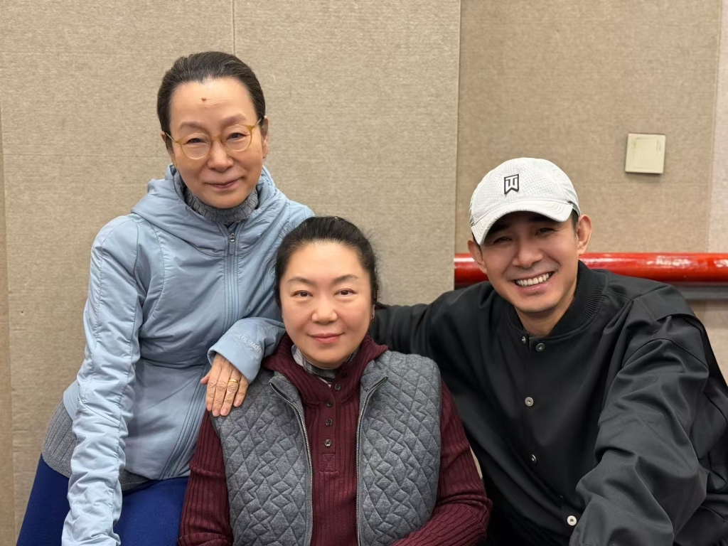 奚美娟(左)、田沁鑫(中)和贾一平(右)在今年北京排练时合影