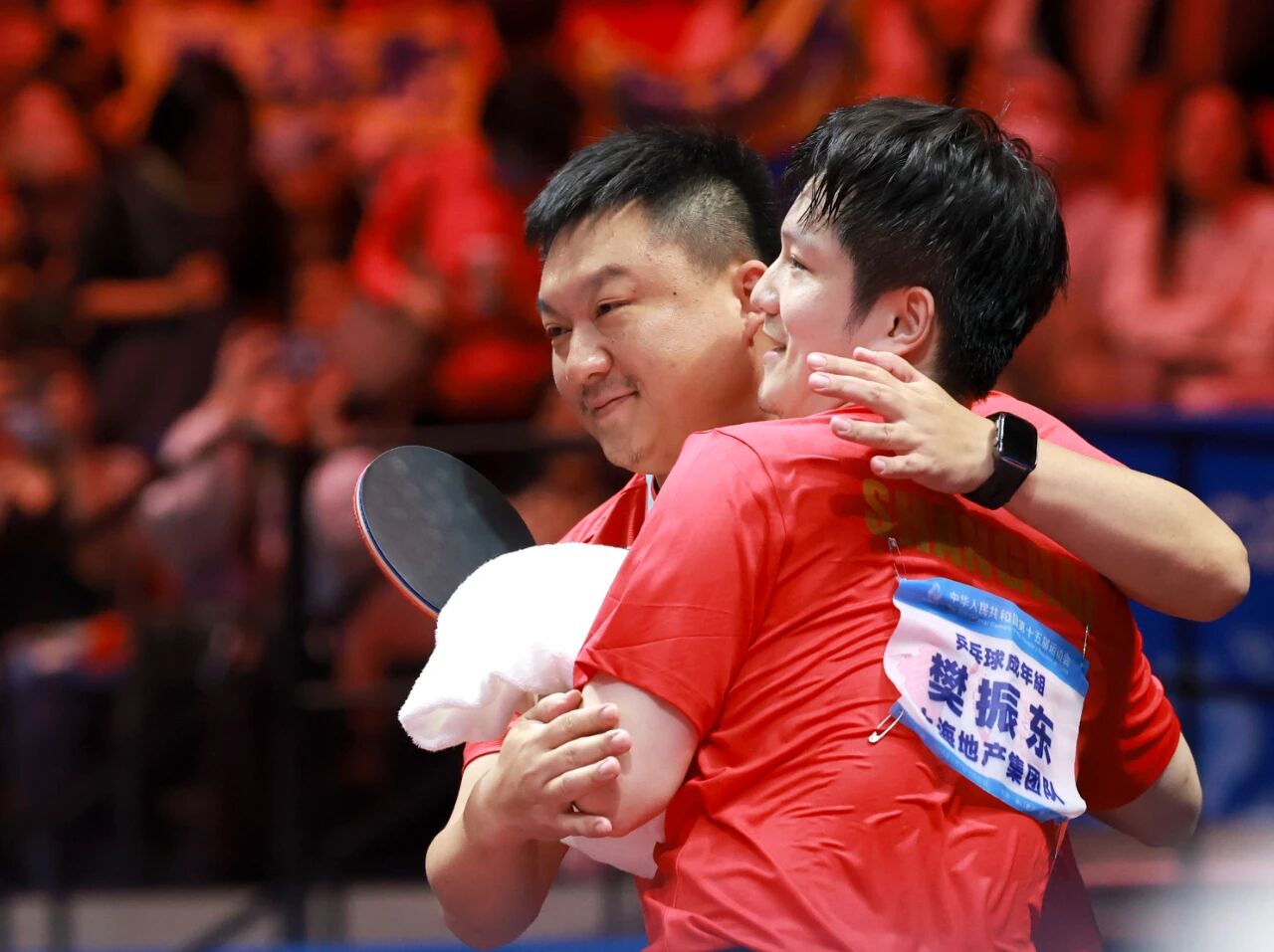 谈及代表上海队参赛的感受,樊振东感慨道:“这个备战周期我遇到了伤病和心态上的低谷,感谢上海队在赛前对我的理解与支持,让我能以更好的状态面对全运会。”他特别强调:“能够为上海代表团夺得金牌,与团队共享这一刻,我感到非常开心。”
